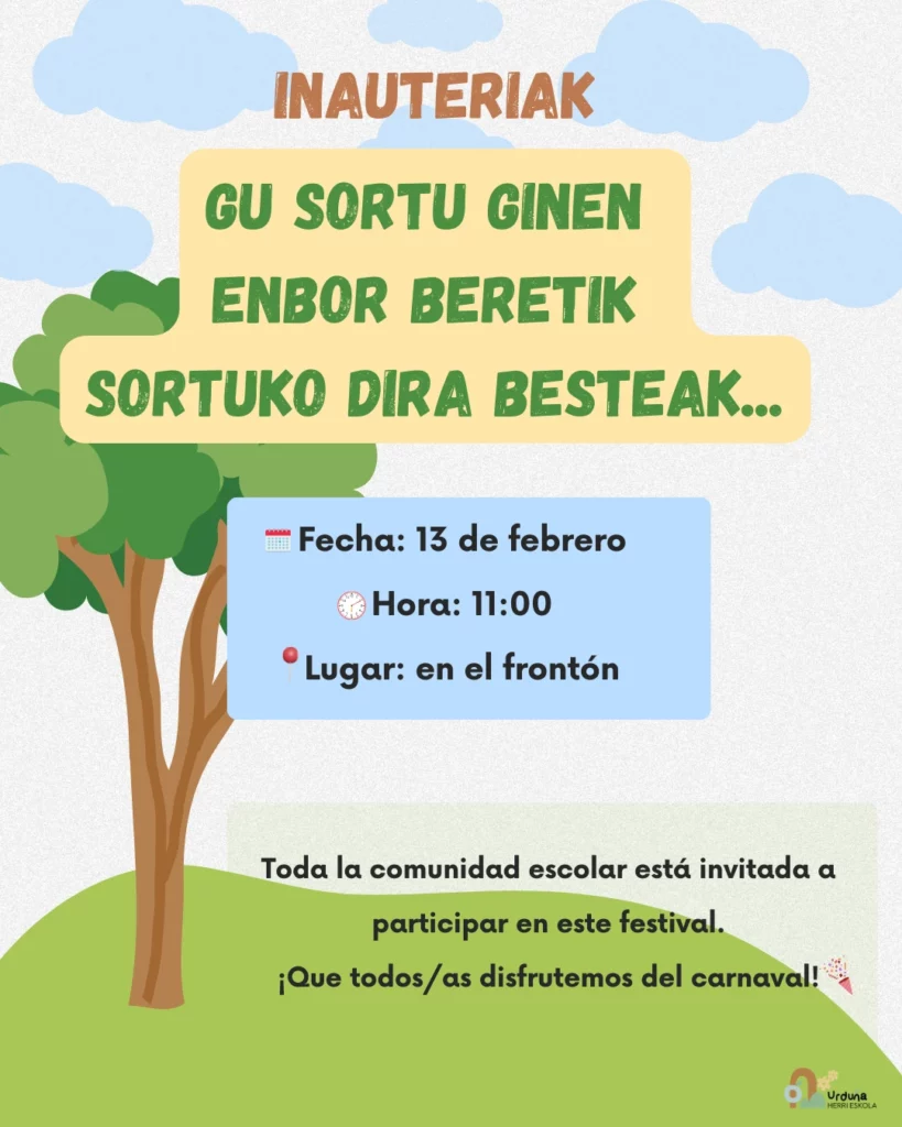 El viernes, 13 de febrero, celebraremos el carnaval. ¡Todos/as estáis invitados/as a participar!